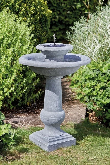 Buy a Chatsworth 2 Tier Fountain, Gorgeous Aged Stone Finish, Integrated Solar Panel Birdbath Fountain, Best Prices, Great reviews, Free UK Delivery
