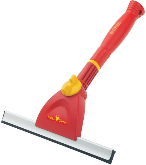 The Wolf Garten Multi-Change Window Wiper is perfect for the gardener who takes pride in their greenhouse’s appearance, or the canny home owner who wants to create a professionally cleaned looking house as frugally as possible. With a generous working width of 35cm, the window wiper is perfectly designed to tackle any greenhouse or conservatory grime, especially as it features a 110° rotating head to allow you to really get stuck into those difficult or hard to reach corners and surfaces. Complete with the Wolf Garten ZM02 handle, the window wiper is part of Wolf Garten‘s Multi-Change Range which means you can attach any of the Wolf Multi-Change Handles – either the ZMV3 or ZMV4 telescopic handles – to suit your cleaning needs.